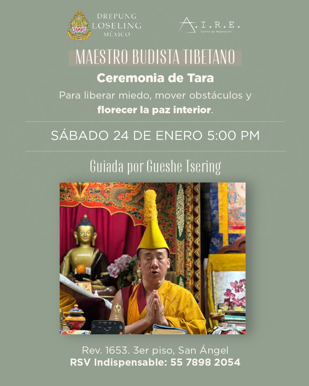 En esta ceremonia sagrada invocaremos la fuerza, el poder, la compasión y el amor de Tara Verde, deidad del budismo tibetano, reconocida por su capacidad de remover obstáculos, abrir caminos y favorecer los logros, la abundancia y la prosperidad desde un estado de consciencia elevada.